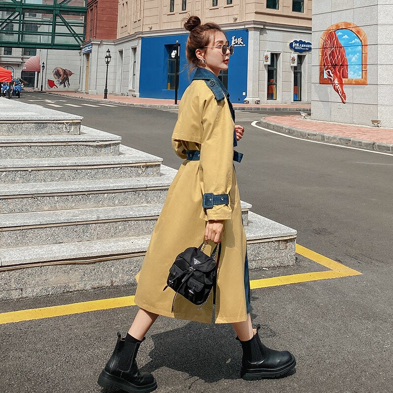 Esittelyssä ainutlaatuinen farkkutyylinen trenssi, joka yhdistää klassisen trenssitakin tyylikkyyden ja denimin rentouden. Tämä kaksivärinen takki on suunniteltu niille, jotka haluavat erottua tyylikkäästi välikauden vaihtelevissa säissä. Sininen denim ja keltainen kangas luovat yhdessä silmiinpistävän kontrastin, joka kääntää katseet kadulla. Vyötäröltä kiristettävä malli korostaa vartalon muotoa ja mahdollistaa persoonallisen istuvuuden. Kun haluat täydellisen yhdistelmän käytännöllisyyttä ja muotitietoisuutta, tämä farkkutyylinen trenssi on valintasi tyylin edelläkävijänä.