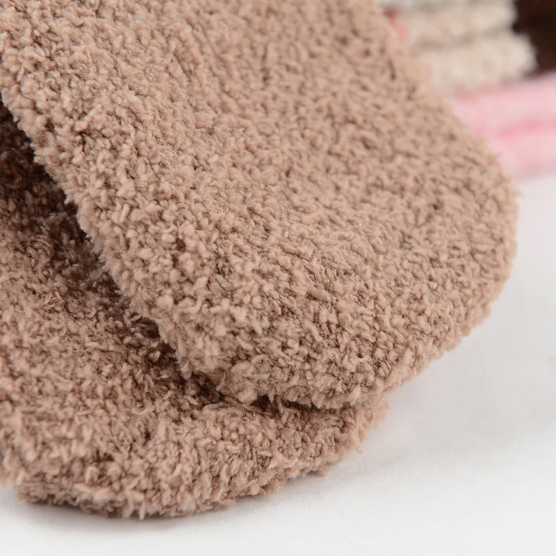 Kuvittele itsesi kietoutuneena lämpimään vilttiin sohvalla, nautit lempisarjastasi ja jalkojasi lämmittävät meidän ylellisen pehmeät Kevyet Pehmosukat. Nämä hurmaavat eläinhahmoilla varustetut sukat ovat enemmän kuin vain asuste – ne ovat kuin halaus jaloillesi. Erityislaatuinen pehmeä fleece-materiaali tuntuu ihollasi kuin pilvi, mutta pitää silti jalkasi lämpimänä koko illan. Jokainen sukkapari on huolellisesti suunniteltu tuomaan paitsi mukavuutta, myös ripauksen iloa ja leikkisyyttä arkeesi. Näiden sukkien söpöt eläinhahmot kuten karhut, kissat ja kanit saavat hymyn huulillesi aina kun katsot jalkojasi.