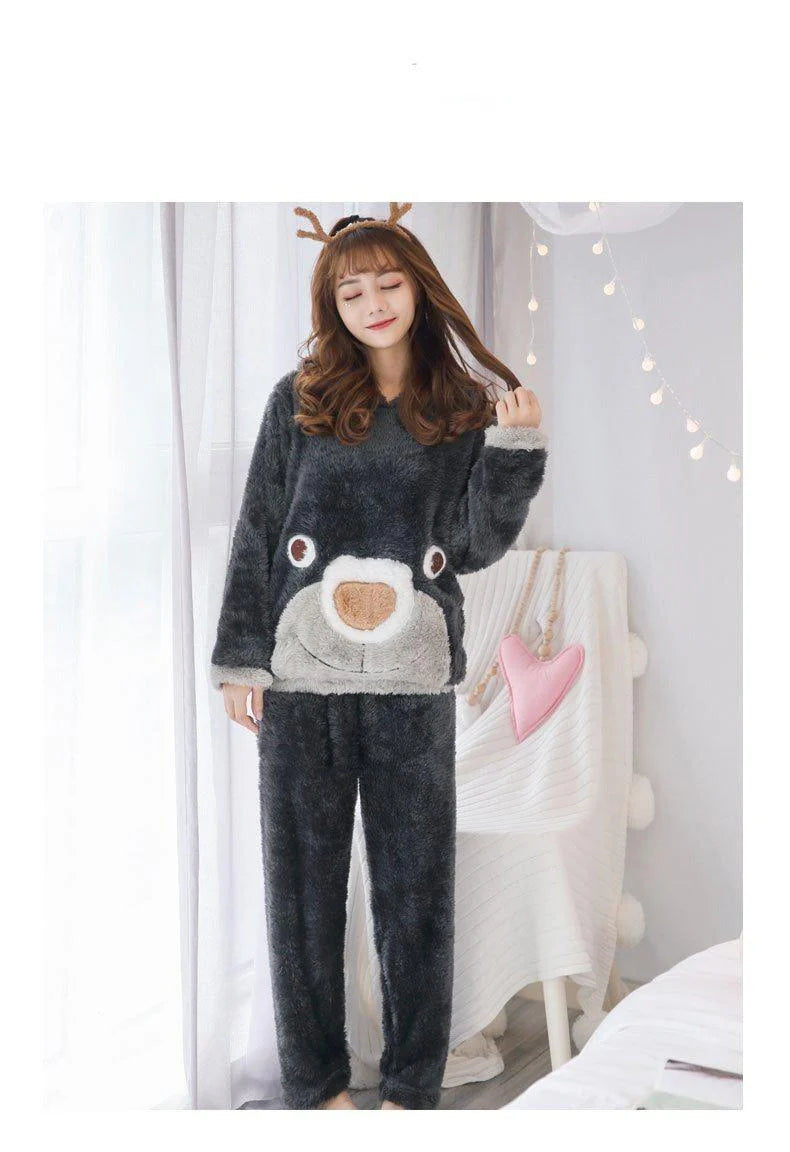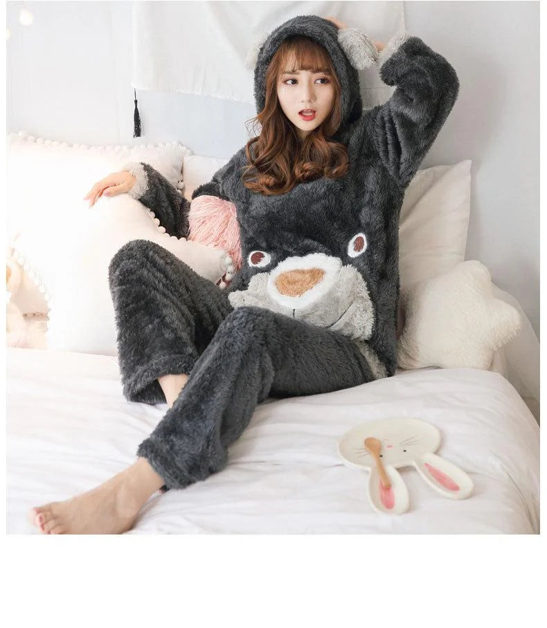 Kietoudu täydelliseen lämpöön ja mukavuuteen meidän suloisen Kokonainen Fleece Pyjama -setillämme, joka on suunniteltu juuri sinunlaisillesi rentoutumisen ystäville. Tämä ihastuttava harmaa karhu-teemainen asu on valmistettu ylellisen pehmeästä ja lämpimästä fleecestä, joka tuntuu ihollasi kuin hellä halaus. Jokainen yksityiskohta söpöstä karhukasvosta pehmeisiin hihansuihin on suunniteltu tuomaan hymyn huulillesi ja lämpöä sydämeesi. Toisin kuin tavalliset yöasut, tämä Kokonainen Fleece Pyjama tarjoaa täydellisen yhdistelmän leikkisyyttä ja käytännöllisyyttä – kauniin ulkonäön lisäksi se pitää sinut lämpimänä koko yön. Unohda ne illat, jolloin heräät kylmästä värisevänä – tämä pyjama on kuin henkilökohtainen lämmitin kylminä talviöinä!