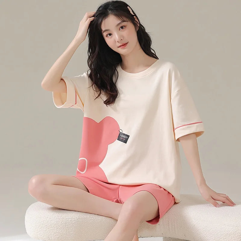Naisten Lyhyen Vaaleanpunaisen Nalle Pyjaman Ylellinen Mukavuus