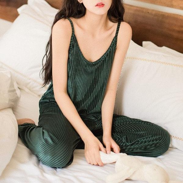Naisten Vihreä Sametti Pyjama - Ylellistä mukavuutta jokaiseen hetkeen