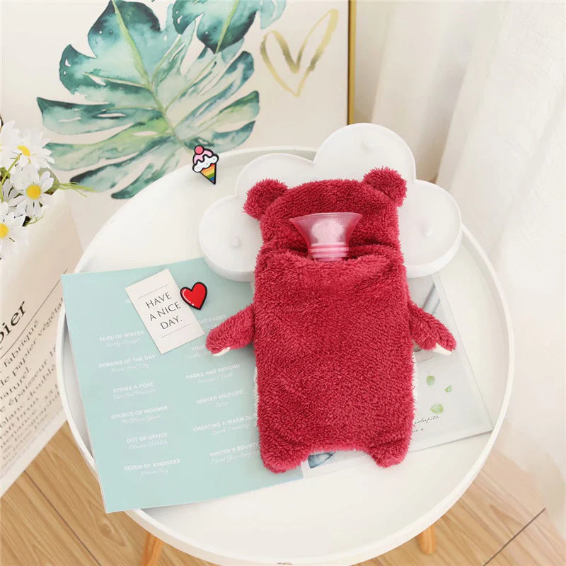 Nallen käyttö on yksinkertaista: irrota vaaleanpunainen kuumavesipullo, täytä lämpimällä (ei kiehuvalla) vedellä, kiristä korkki huolellisesti ja aseta takaisin nallen sisään. Anna lämmön lohduttaa sinua. Materiaalit on valittu kestävyyttä ja pehmeyttä ajatellen, joten nalle säilyttää muotonsa ja suloisuutensa käytöstä toiseen.
