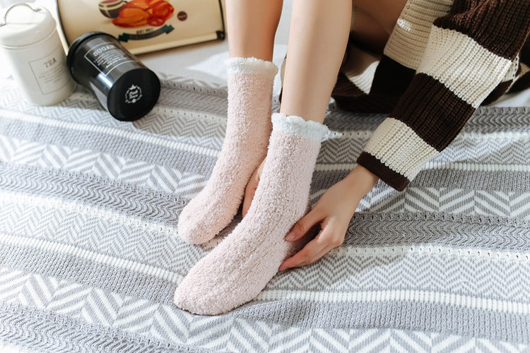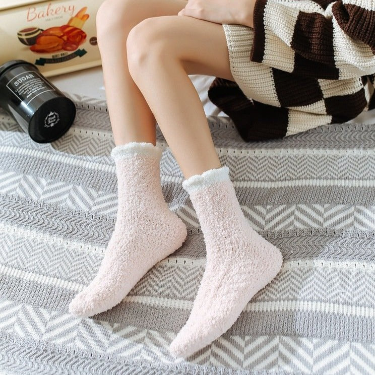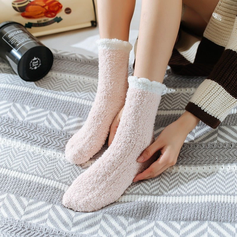 Nauti täydellisestä kotihetkestä vaalea vaaleanpunainen pehmosukkien kanssa